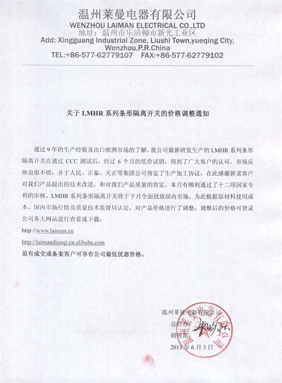 LMHR系列條形隔離開關(guān)調(diào)價通知 (圖)