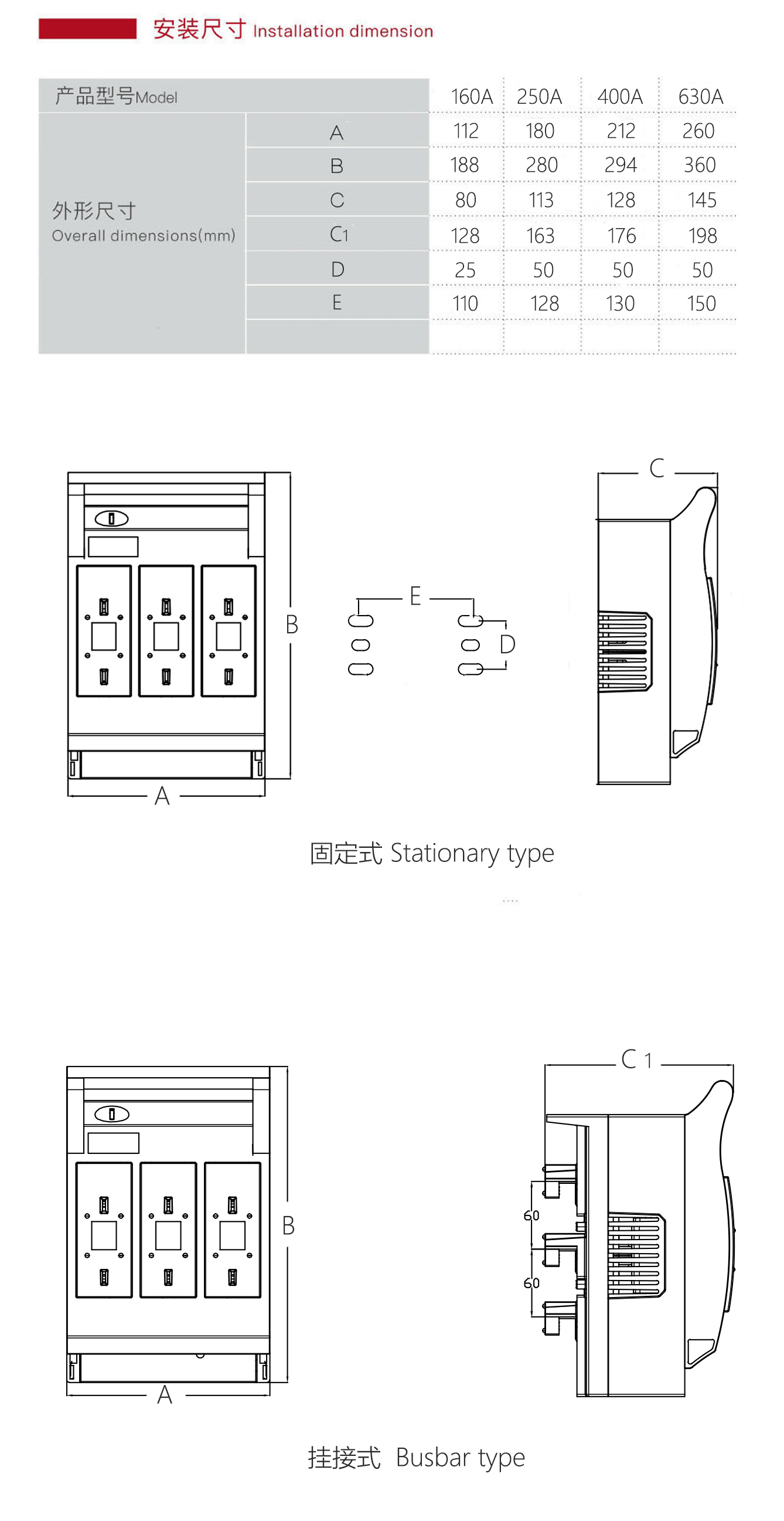 • 約定發(fā)熱電流lth 40A 63A 160A 250A 400A 630A
